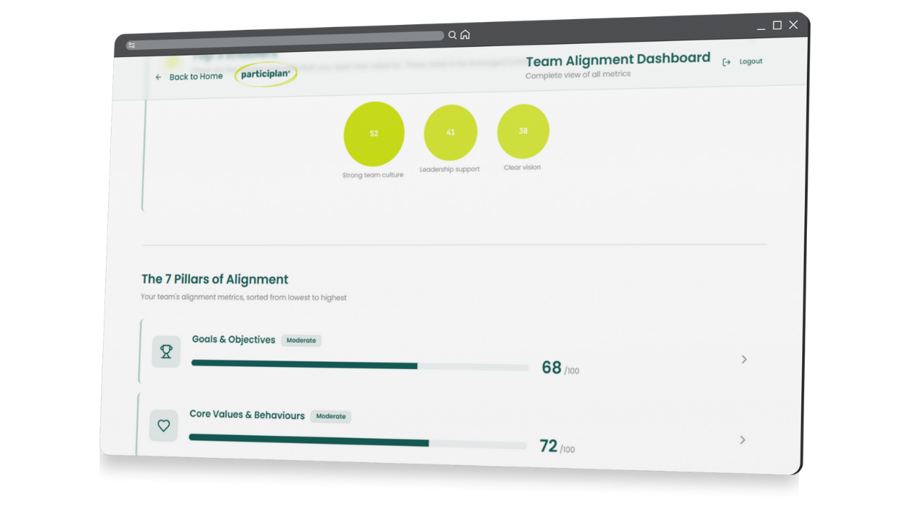 Participlan Online is a proactive strategic alignment solution that helps detect, and address misalignment before it hits your KPIs, OKRs, or team performance.
